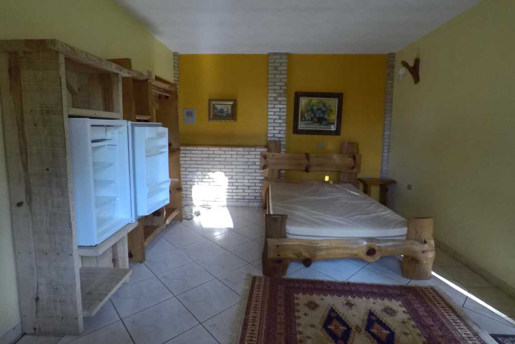 Além das casas, tem algumas suítes, como a da foto abaixo. Não tem cozinha, apenas cama de casal, um sofá cama, frigobar e o banheiro. Lembrando que não dormimos por lá, ainda. Mas, pedimos para dar uma olhada e aproveitei para fotografar e compartilhar com você.